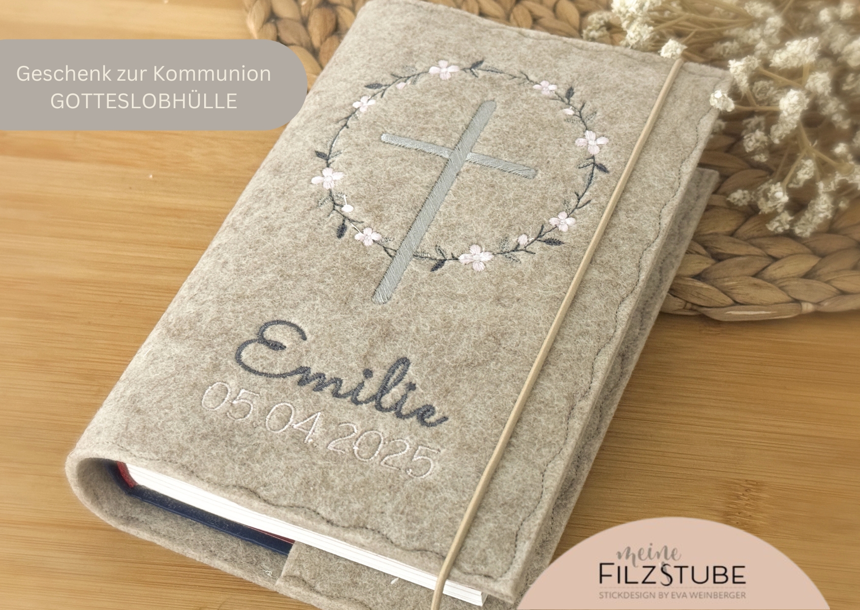 Meine Produkte sind keine Eintagsfliegen. Filz ist ein langlebiges, formstabiles Material. Kapuzenhandtücher wachsen über Jahre mit dem neuen Erdenbürger mit und die Gotteslobhüllen begleiten das Kommunionkind ein Leben lang. Jedes meiner Unikate ist somit ein nachhaltiger, langjähriger Begleiter!